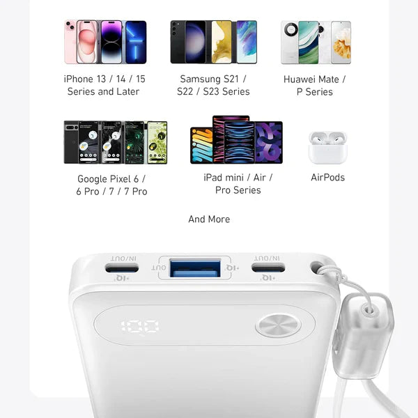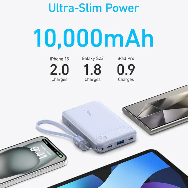 Anker Power Bank Portable Charger with Built-in USB-C Cable 10000mAh /22.5W